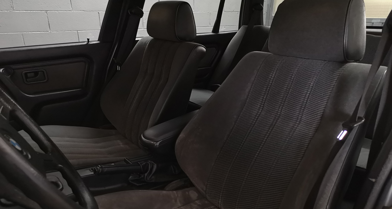 Très belle présentation intérieur, la sellerie, les moquettes et le tableau de bord sont en parfait état. Un classique allemand des versions e30 .