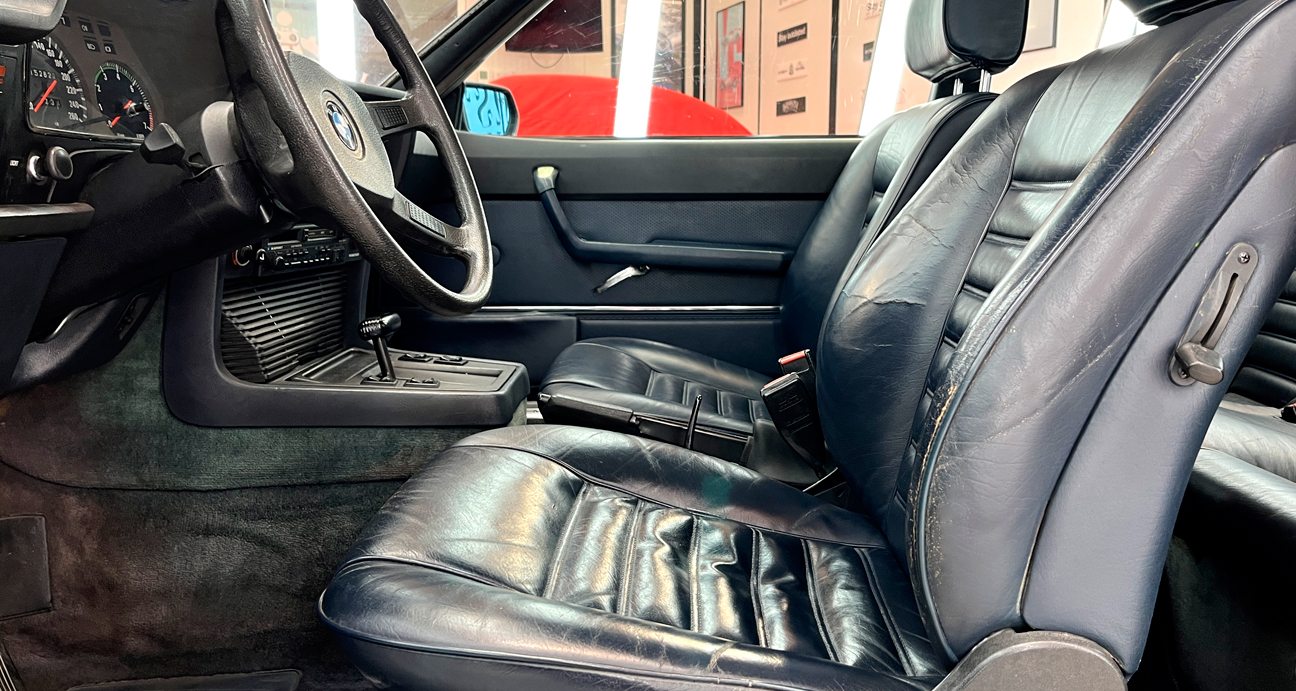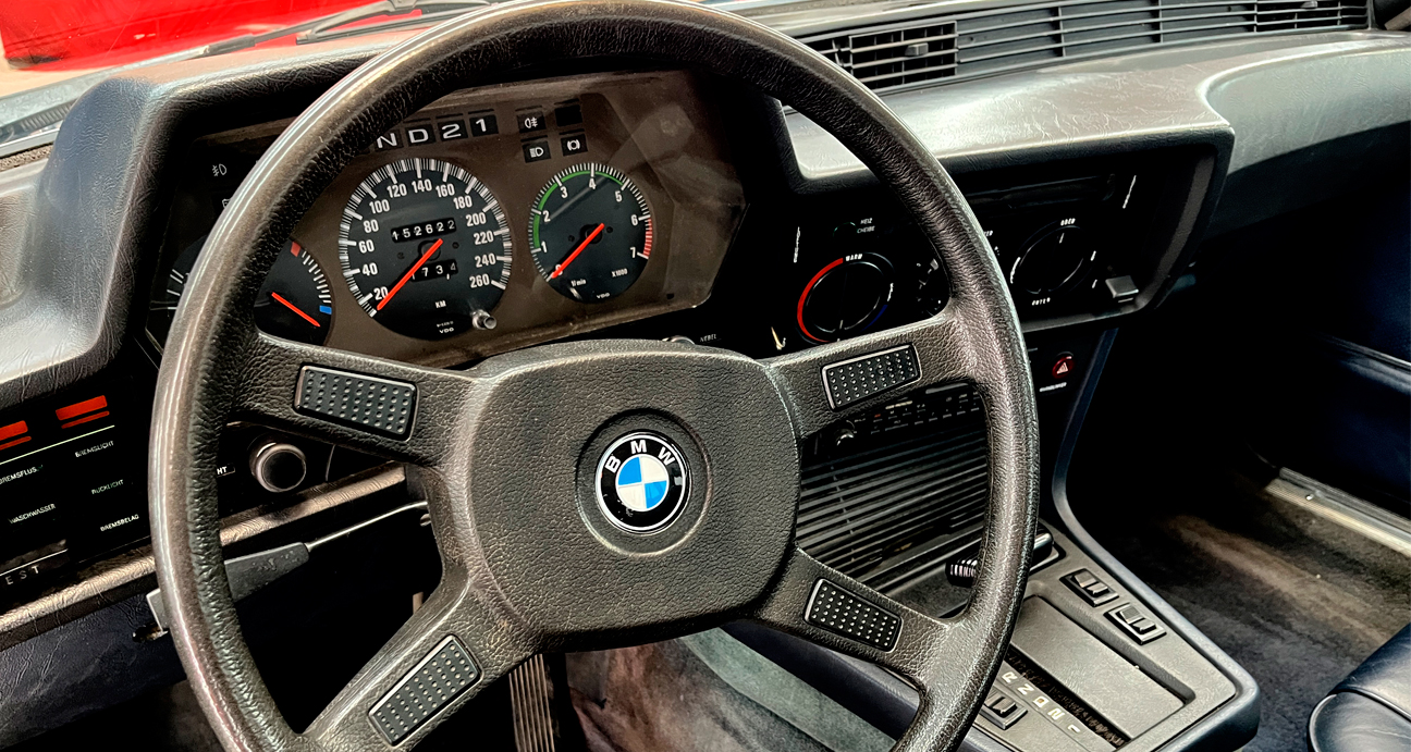 L’intérieur de la 635 CSI est un modèle de luxe et de confort. Équipé de sièges en cuir, d’un tableau de bord bien conçu et d’une technologie de pointe pour l’époque, il offre une expérience de conduite agréable. Les accents de bois et les finitions de haute qualité reflètent l’attention portée aux détails qui caractérise BMW.