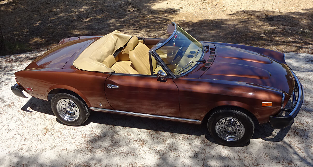 Precioso Fiat 124 Spider Pinifarina de 1980 con un total de 84,900 millas en la actualidad. Mantenimiento al día, muy buen estado, el brillo de la pintura está intacto al igual que su interior de cuero beige.