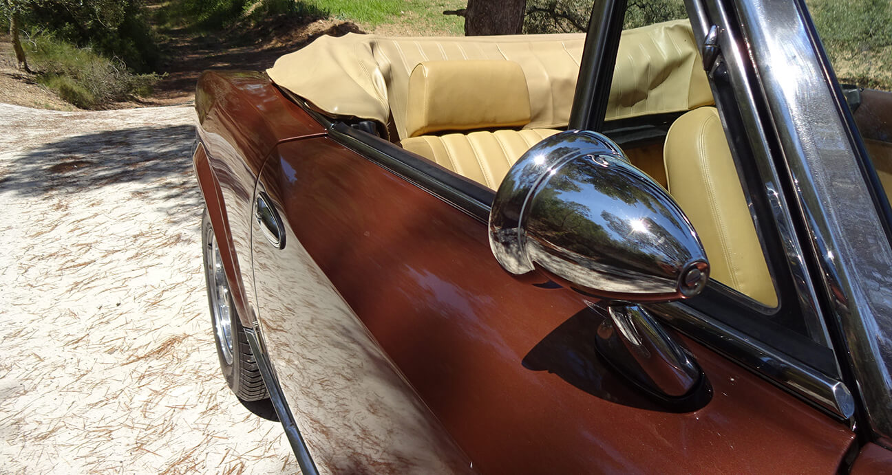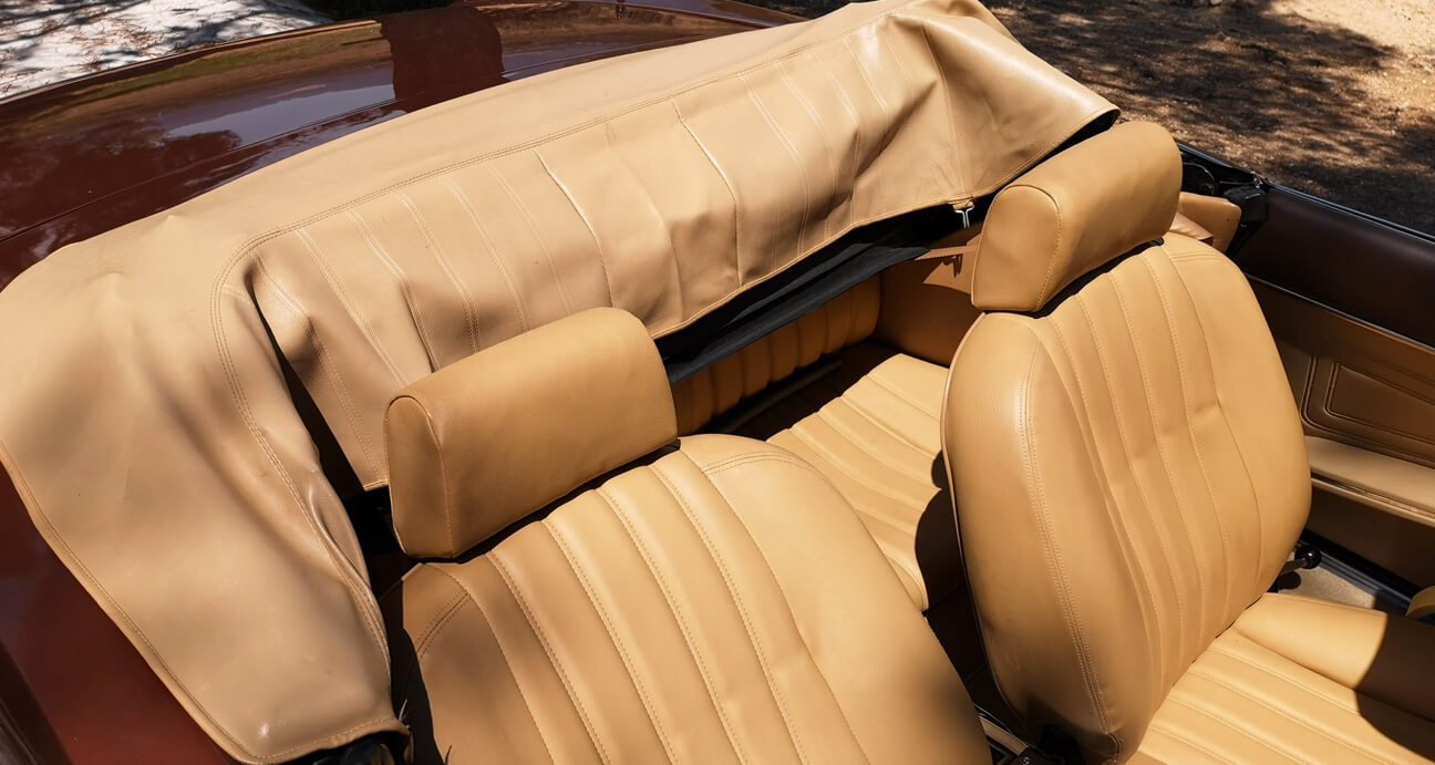 Interior de piel beige. Capota de tela marrón en perfecto estado, luneta trasera de plástico como nueva.