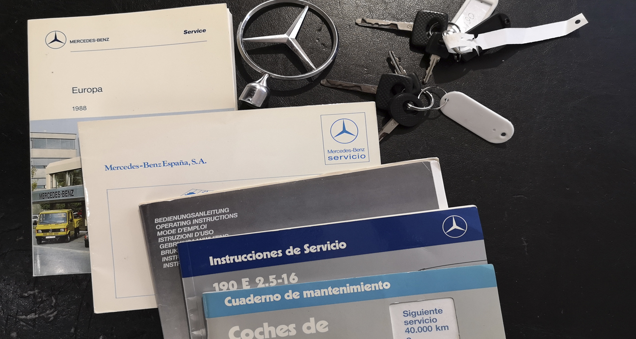 Une des 5743 exemplaires construites. Mercedes Benz 190 E 2.5 16s 204cv boite manuelle immatriculée le 22 Juin 1989 en Espagne. Historique connu, seulement 2 propriétaires.