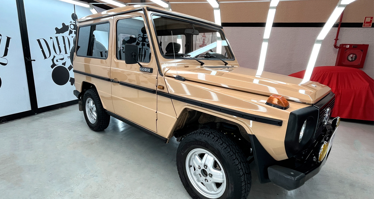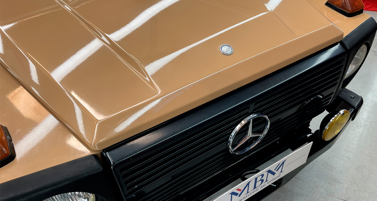 Mercedes Classe G 300 GD de 1980 vendu neuf en Espagne. Véhicule emblématique qui allie robustesse et élégance. Conçu à l’origine comme un véhicule tout-terrain, il a rapidement gagné en popularité grâce à son design distinctif.