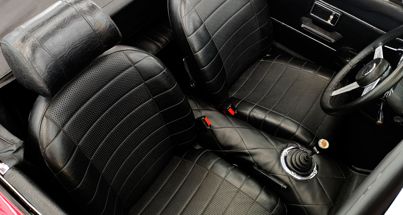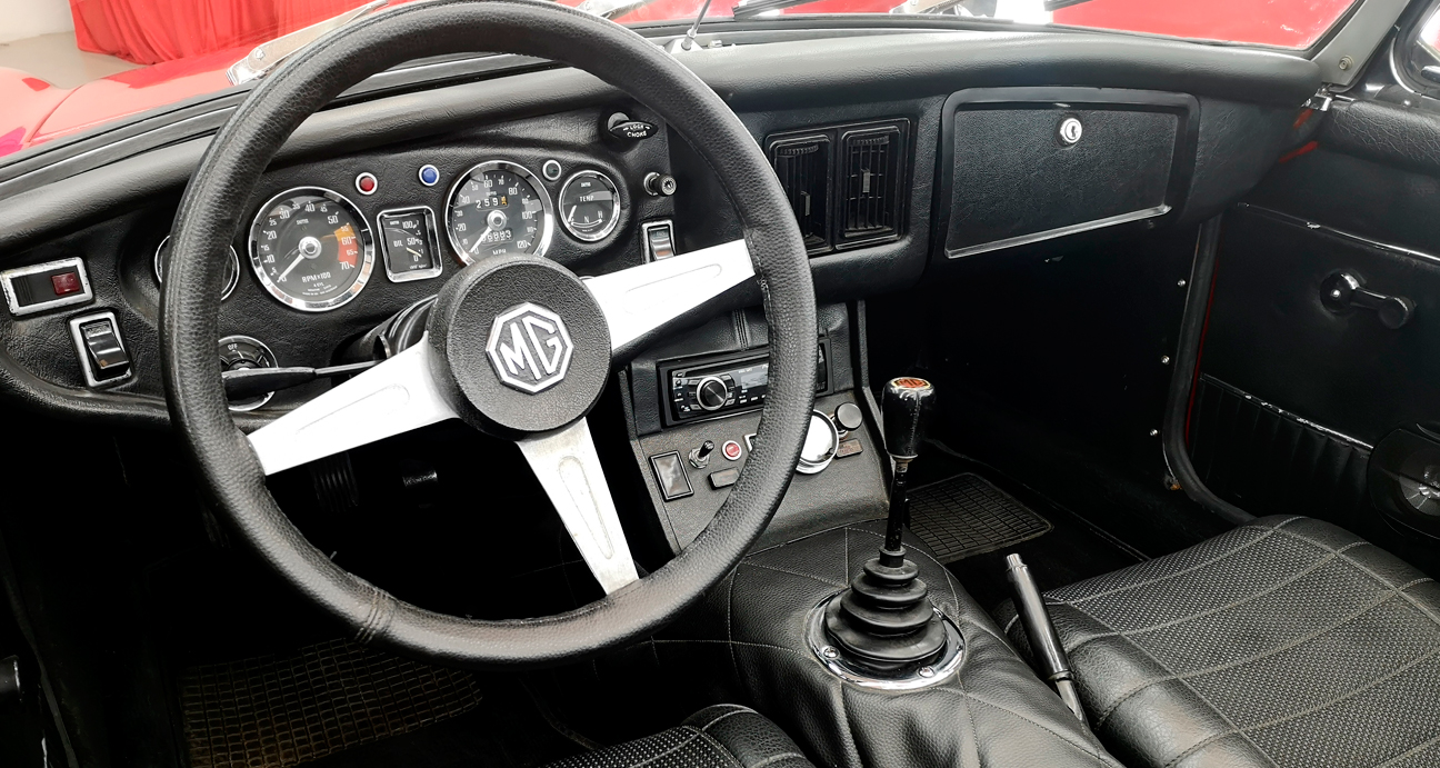 Want to drive with your hair blowing in the wind? Here is a very beautiful Leyland MGB 1800 Cabriolet available in our Showroom. Superb combination of red color with black interior.