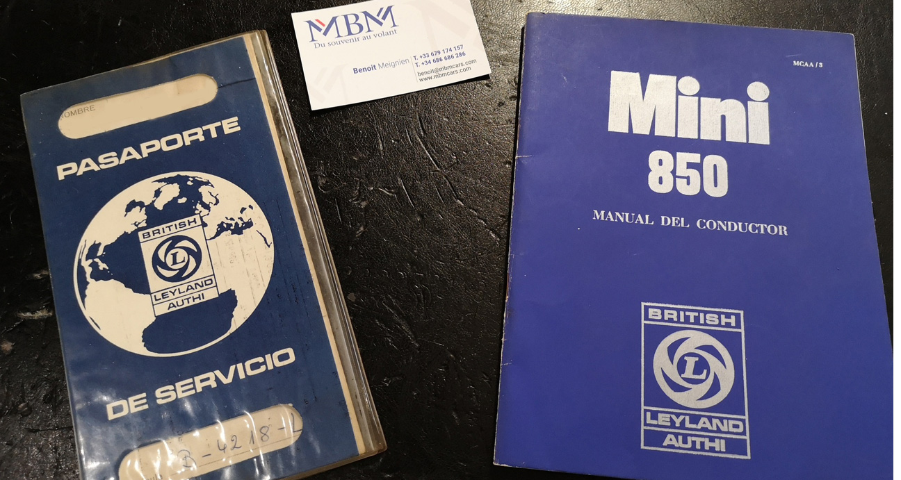 Très belle Mini 850 L immatriculée le 12/1972 en Espagne.