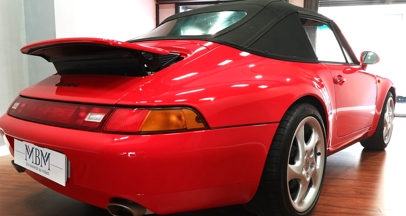 Superbe Porsche 993 Cabriolet tiptronic, immatriculée neuve en Allemagne le 17/06/1997. Parfait état, entretien complet Porsche, livrée avec ses doubles de clé, carnet d’entretien, manuel d’utilisation, housse… et 111 points de contrôle Porsche.