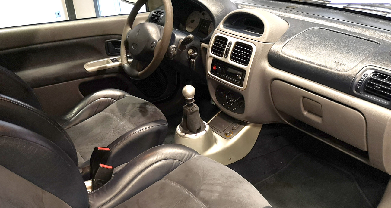 Renault Clio V6 fase 1.5 del 14/01/2002 con un total de 64.100 kms actualmente. Historia conocida, 1ª mano hasta 2004 y segunda mano hasta ahora, vehículo de origen alemán. Kilometraje real y garantizado. Facturas de mantenimiento y archivo de inspección.