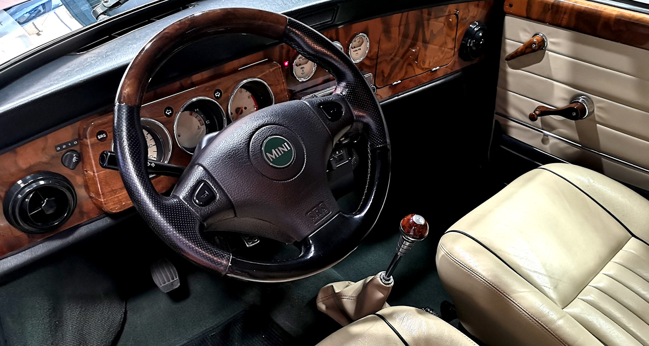 De couleur « British Racing » et avec sa superbe sellerie en cuir beige, cette Mini ne laisse personne indifférent. Encore une magnifique Mini qui sera bientôt disponible à la vente chez Classics Mini à Aubergenville en France, votre spécialiste Mini par excellence .